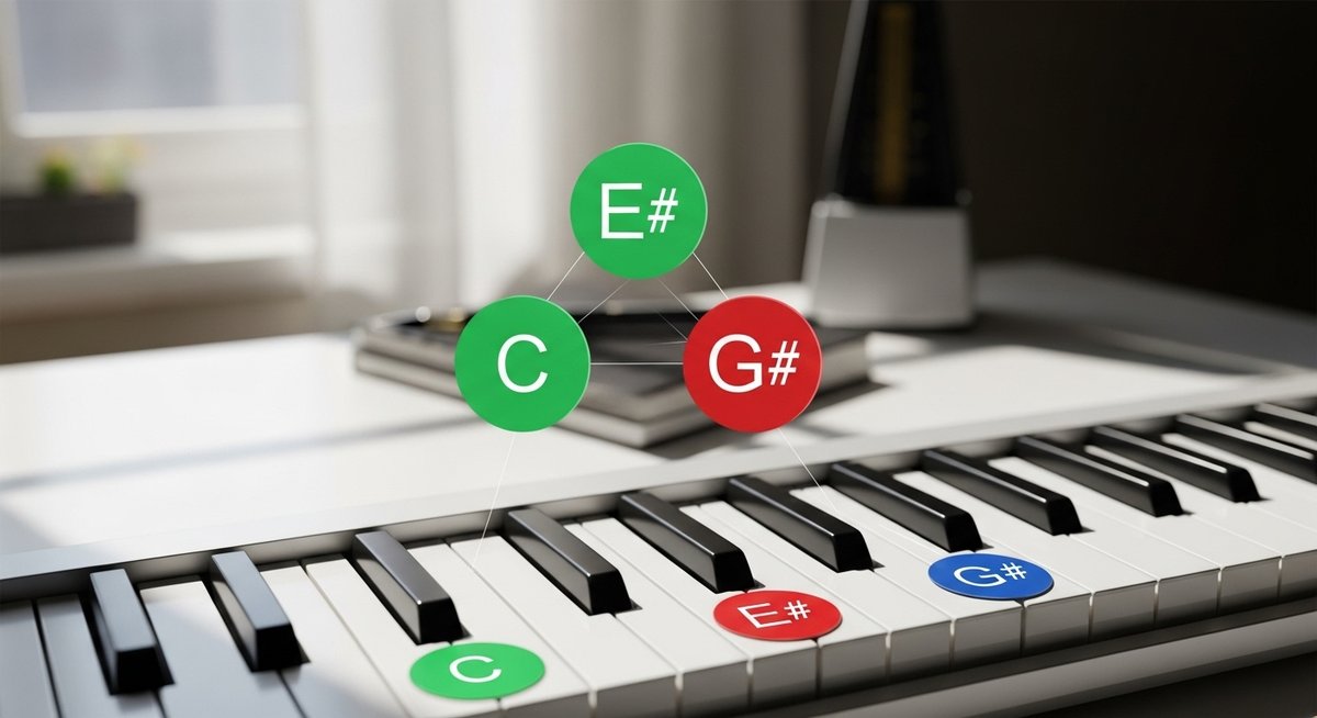 オーギュメント(Augmented)という言葉には「増大した」という意味があります。その名の通り、通常のメジャーコードよりも少しだけ「音の幅」を広げた構成になっており、その絶妙なズレが聴く人に心地よい緊張感を与えます。まずはその正体を詳しく見ていきましょう。