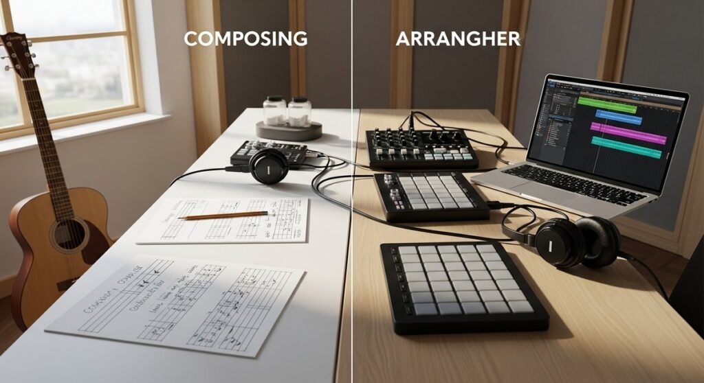 作曲と編曲のどっちが大変か、それぞれの役割や向き不向きを詳しく解説します。曲の芯を作る作曲と、聴こえ方を整える編曲の違いを理解し、効率的にスキルを伸ばすための学習リソースや作り方の順番をまとめました。AbletonやMuseScoreなど、初心者でも両方のスキルをラクに伸ばせるおすすめツールも紹介します。 -