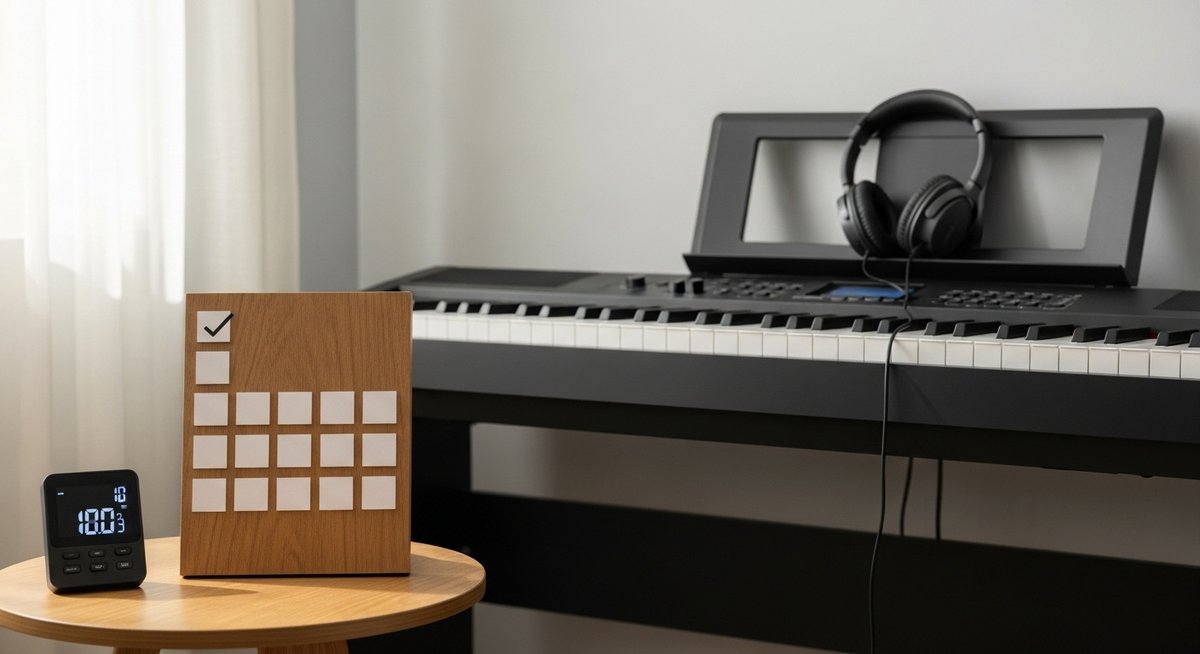 大人になってからのピアノは、競争ではなく自分自身を楽しむための素晴らしい趣味です。毎日少しずつ触れること、片手から丁寧に積み上げること、そして録音や便利なアプリ、質の良いヘッドホンなどのアイテムを味方につけることで、誰でも着実に上達できます。
