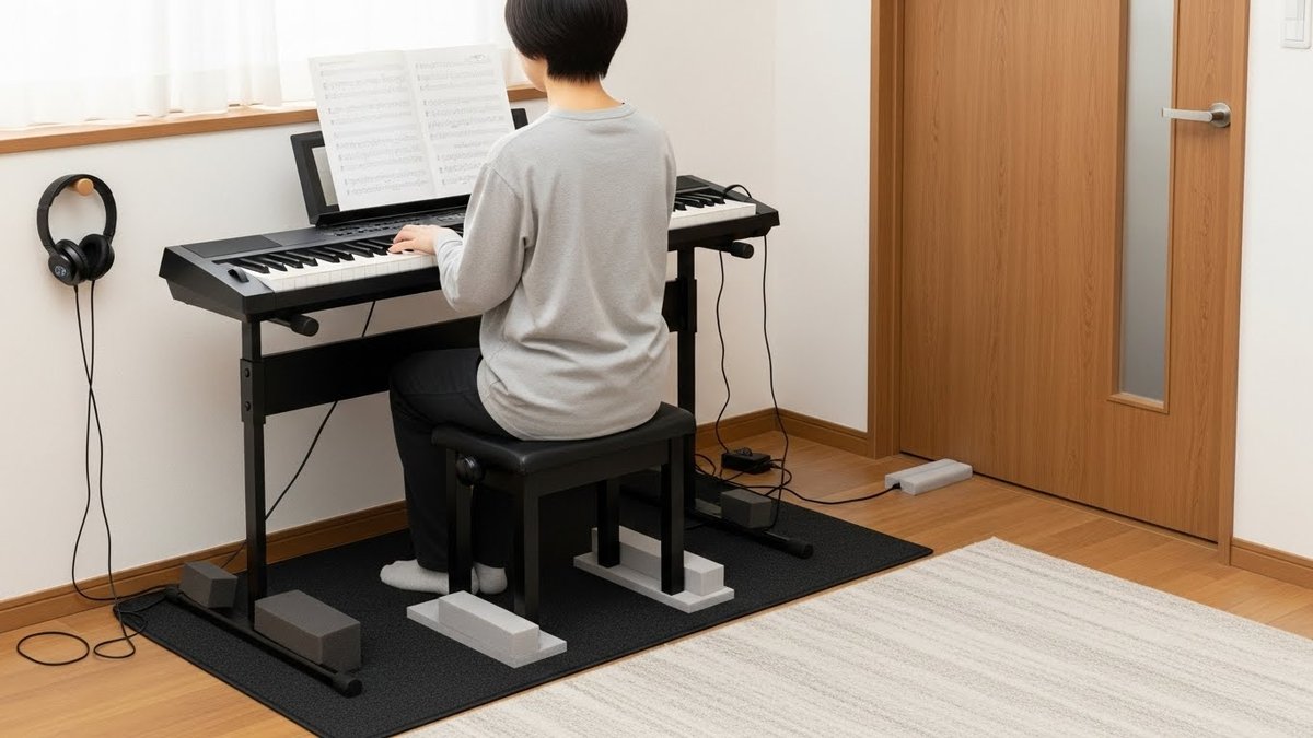 賃貸でキーボードを弾くことは決して不可能ではありません。音漏れの主な原因である「打鍵音」「ペダル振動」を理解し、適切な防音グッズと配置の工夫を組み合わせることで、近隣への影響を最小限に抑えることができます。完璧な防音室を作る必要はありません。まずはマット一枚、壁からの距離といった小さな対策から始めて、気兼ねなく音楽を楽しめる環境を整えてみてください。