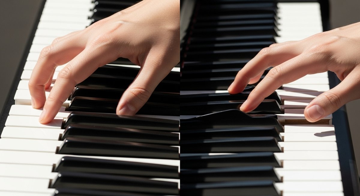 テンポの速い曲でスタッカートやテヌートが出てくる場合、指先だけの力で対応しようとすると腕がすぐに疲れてしまいます。そこで重要になるのが「手首の柔軟性」です。